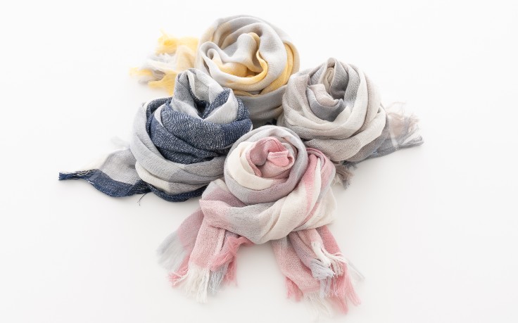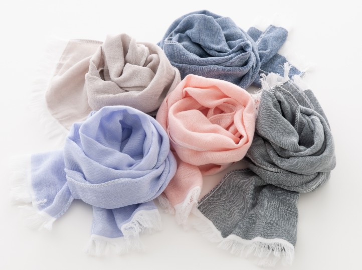 本日より発売のコットンガーゼマフラー・コットンチェックマフラーは、落ち着いた色味がとても魅力的で、