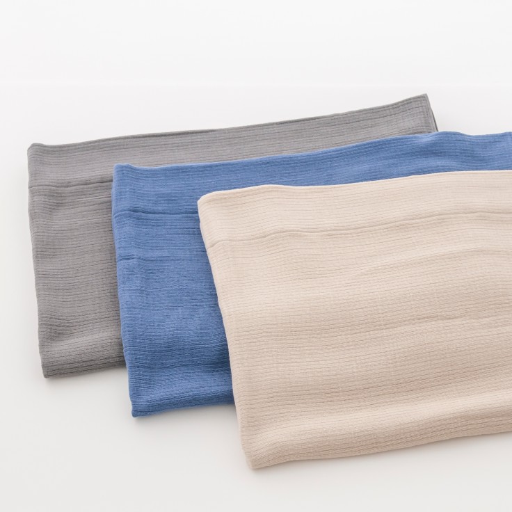 4枚のガーゼ生地を絡ませるように織り上げているので、ふんわりとした風合いとなっております。