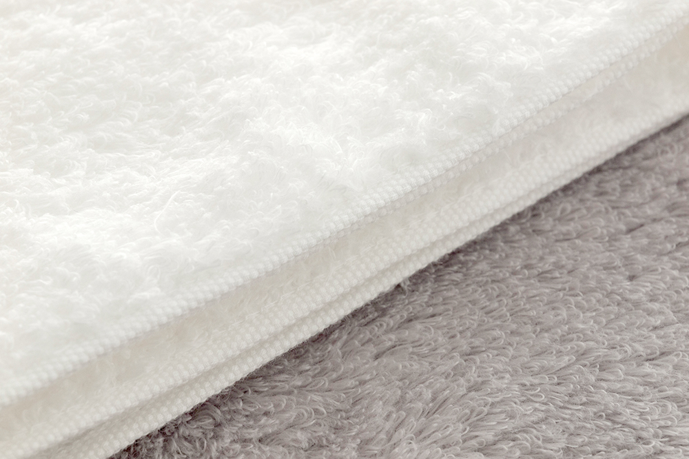 紡績会社と共同で開発した、大成タオルオリジナル糸「エレガントツイストフリー」を使用しています。 通常の糸の半分の細さの糸を無撚糸にすることにより柔らかさを追求しました。