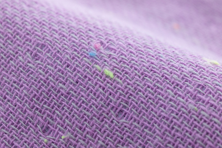 カラフルなネップ入りガーゼとふわふわ無撚糸パイルのリバーシブルに、のんびりアニマルたちの刺繍がポイントです。