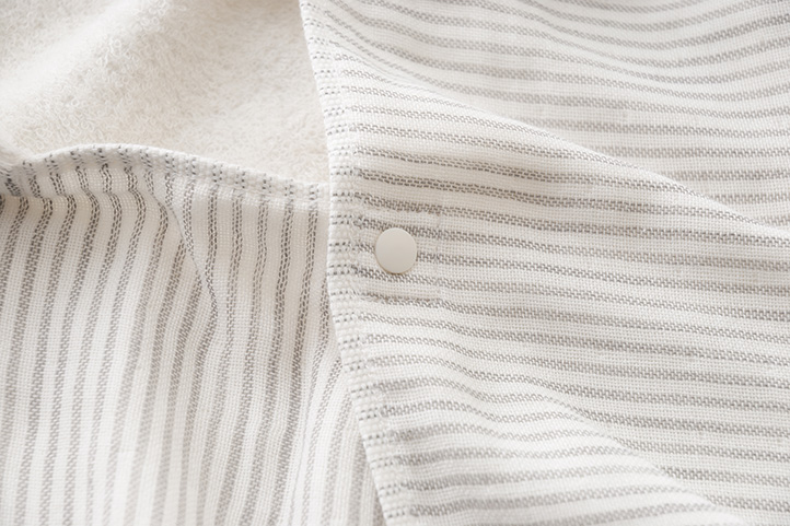 シンプルなボーダー柄にクマさんの耳が付いた見た目も可愛らしいフード付きバスタオルです。 赤ちゃんの肌に触れることを考えて糸の太さや折り方までこだわっています。 また、軽やかで通気性も良いため、乾きが速くお洗濯も楽ちんです。