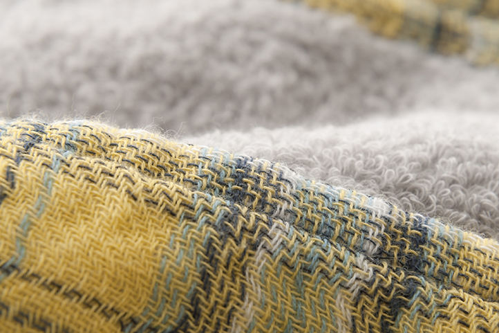4色づかいの糸を使い、伝統的なタータンチェックをガーゼ部分に表現した、絶妙なバランスの織模様が楽しめる綿100%のガーゼ&パイルのタオルです。パイル部分にはシックなグレーの染め糸を使っており、お洒落なだけでなく、汚れが目立ちにくいのも実用的で嬉しいポイント。毎日使うタオルは気兼ねなく扱えるものがいいですよね。