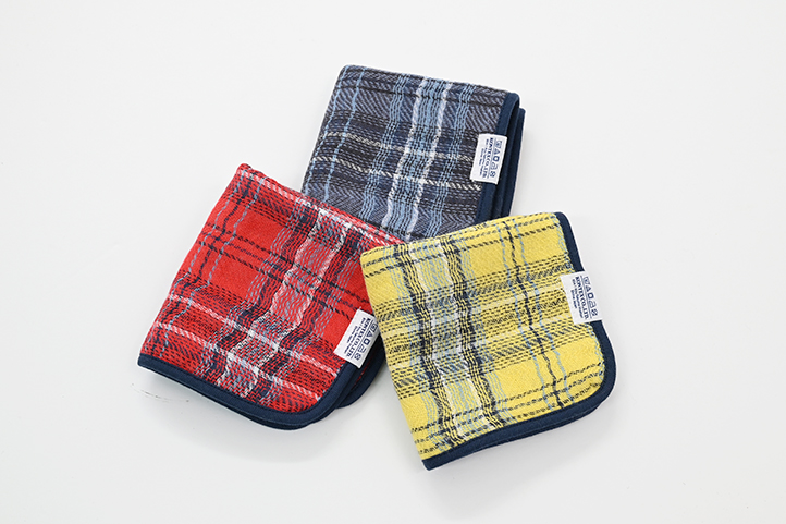 鮮やかなチェック柄のガーゼ&パイルのタオル