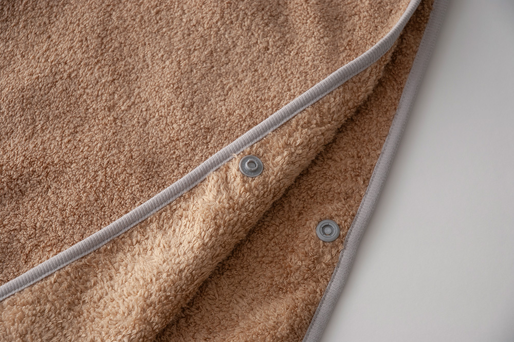 お風呂上りにさっと羽織らせれば、湯冷めから守ってくれるだけでなく水滴や汗も吸いとってくれる、忙しいパパやママのお助けアイテムです。