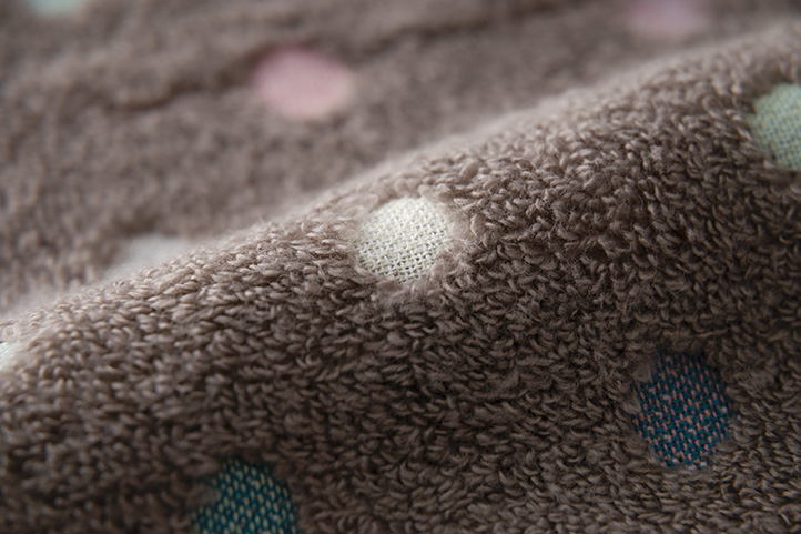 色彩豊かなドット柄、綿本来のふっくらとした柔らかな肌触り