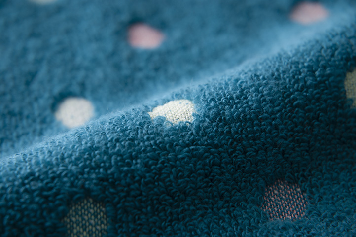色彩豊かなドット柄、綿本来のふっくらとした柔らかな肌触り