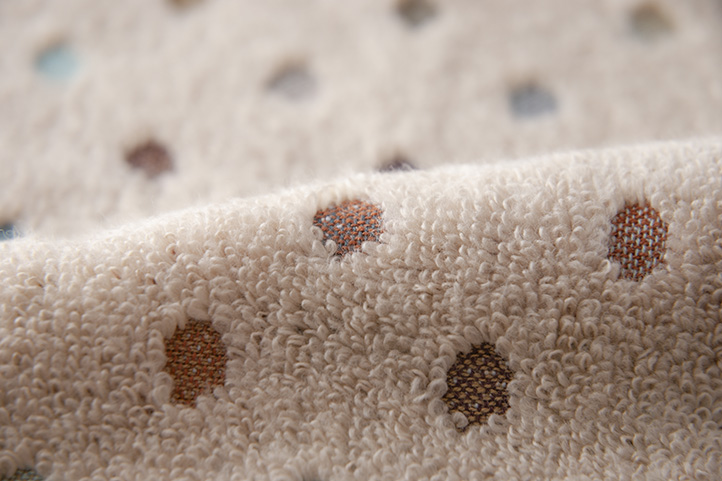 色彩豊かなドット柄、綿本来のふっくらとした柔らかな肌触り