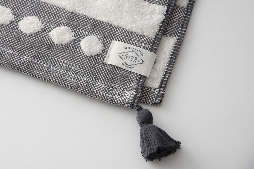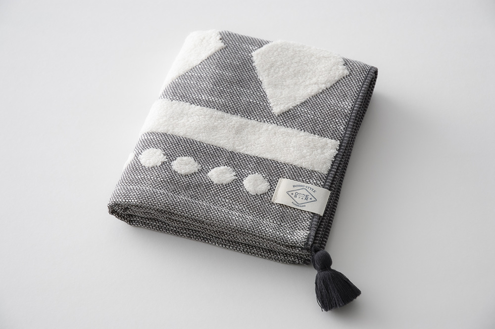 ボヘミアンな民族調にニューヨーク・ソーホーの都会感覚を取り入れた自由で居心地のいいお部屋を演出する「BOHO STYLE」のタオルです。 ざっくり織ったガーゼとふんわりパイルがライフスタイルのシーンにマッチします。 弾力性があり、程よい厚みとソフトな肌触りが特長です。