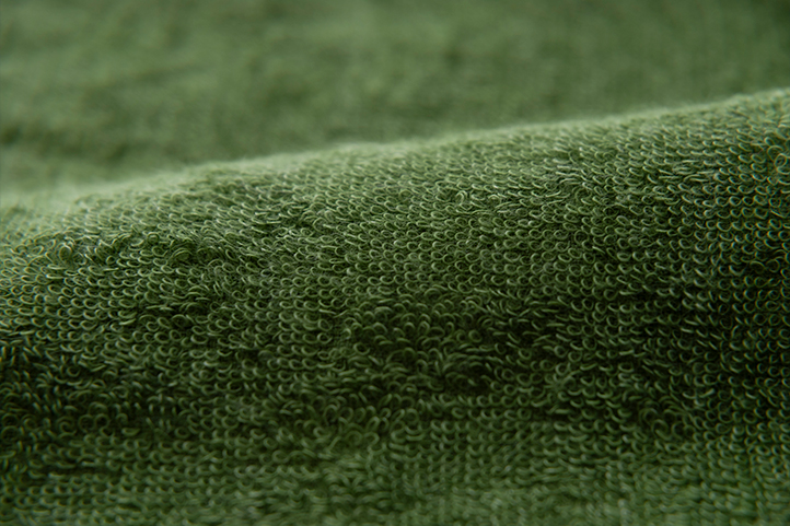 速乾性のある環境配慮型再生ポリエステルとコットンの2層構造で「よく吸ってすぐ乾く」を実現。付属のゴムバンドは輪っかになっているので、シャワールームなどで引っ掛けて使用することもできます。