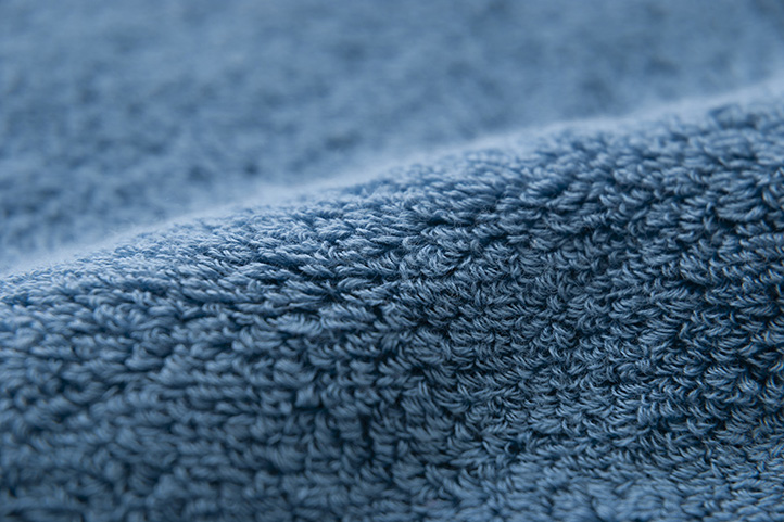 高級ピマコットンのカバーリング糸を贅沢に使用しており、長いパイルと高密度の織りによって、寛ぎのひとときにふさわしい柔らかさと充分な量感を実現しました。仕上げにも工夫を重ね、四方を額縁縫いにすることで端までやわらかな肌触りが続きます。