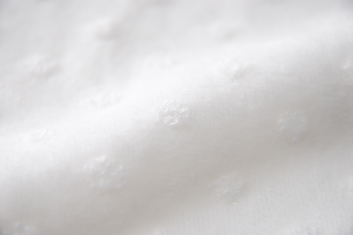 凸凹感のあるドット柄が特徴的、肌触りをリバーシブルに楽しめる