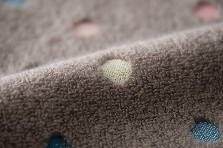 色彩豊かなドット柄、綿本来のふっくらとした柔らかな肌触り