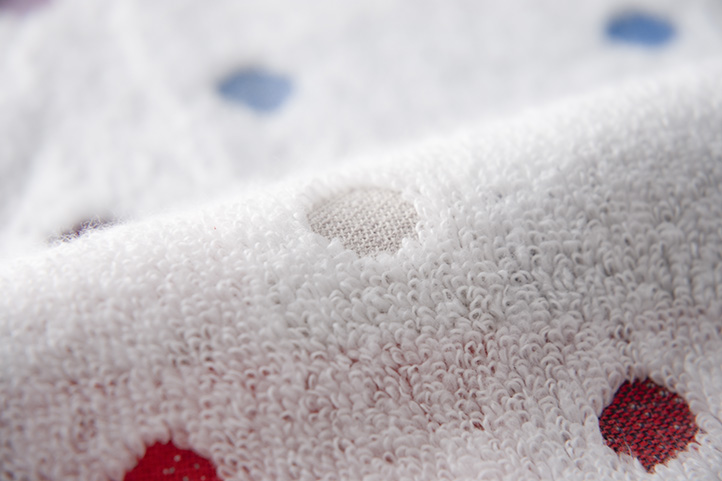 色彩豊かなドット柄、綿本来のふっくらとした柔らかな肌触り