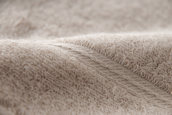 その秘密は紡績会社と共同で時間をかけて独自開発した糸。脱毛率が低くパイルが痩せにくいことに加え、パイルが起き上がりやすい特殊な撚りのため、100回洗濯しても驚きのふわふわ感が持続します。
