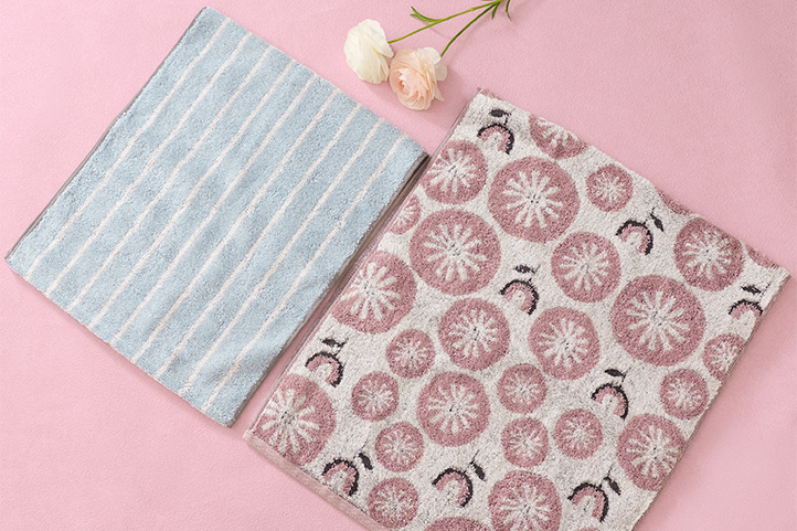 バスタオルよりもコンパクトで、フェイスタオルよりもひとまわり大きく、使いやすいコンパクトなワンサイズタオルです。その質感はふわふわで肌にやさしくフィットし、両面パイルで水分をしっかり吸収してくれます。可愛らしいフラワー柄は、一枚あるだけでお部屋がパッと明るくなり、気分も晴れやかにお洗濯も楽しくなるタオルです。