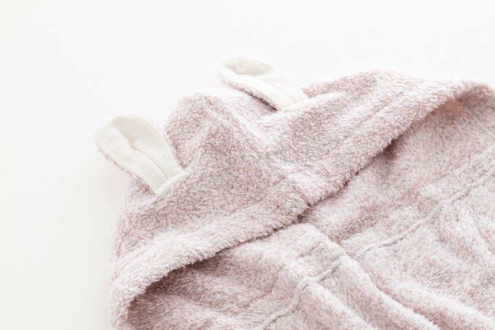 無撚糸の使用でふんわり柔らかなフード付きバスタオル