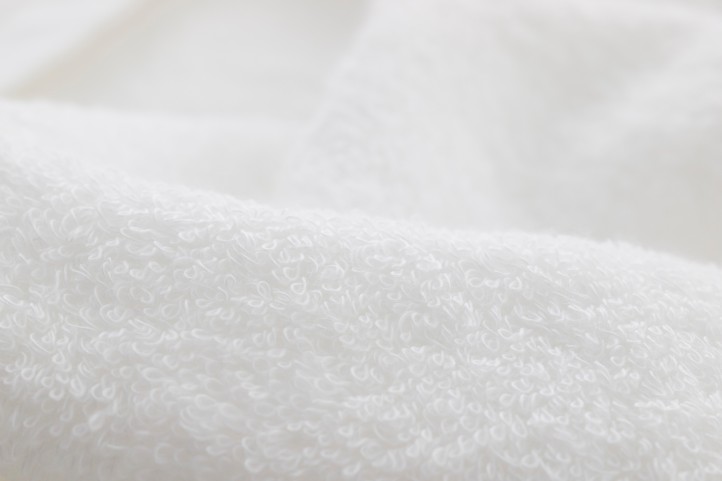 「今治生まれの白いタオル」は、綿が本来持つ、やさしい柔らかさを感じていただくためにリング・コーマという糸を紡ぐ機械で紡いだ、甘い撚りの糸を使用しています。 綿花を防ぐ工程でコーマ通し(くし掛け)を行い、短い不良部分約15%~20%を取り除いた綿糸をコーマ糸といいます。 コーマ通しにより長い繊維だけが平行に揃えられるのでその糸は強度を増し、つやも良くソフトな風合いに仕上がります。 通常のタオルより、タテ糸とヨコ糸の密度をやや甘くしてコシを抜いた生地に甘撚りのリング・コーマ糸を組み合わせているため、お風呂上りにタオル全体で体を包み込んで、水を吸い取る人に、そのやわらかさ、包まれる感覚を楽しんでいただいています。
