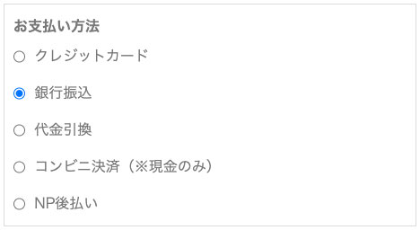 ご注文方法の指定画面でお支払い情報を「銀行振込」を選択