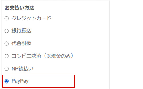 ご注文方法の指定画面でお支払い方法の「PayPay」を選択して